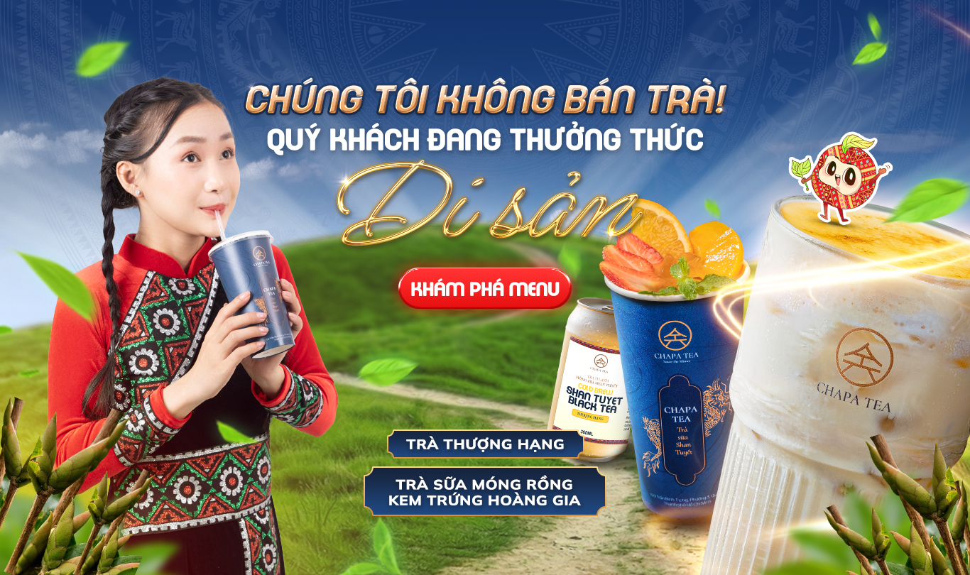 Chapa Tea tự hào mang đến cho bạn dòng trà sữa thượng hạng với chiến dịch “From Farm to Cup”. Tại Chapa Tea, mỗi lá trà Shan Tuyết đều được thu hái từ những đồi trà tự nhiên, trải dài xanh mướt trên những vùng đất cao nguyên hùng vĩ. Quy trình chế biến của chúng tôi hoàn toàn thủ công, giữ trọn vẹn hương vị tinh túy và chất lượng tuyệt hảo của từng búp trà.