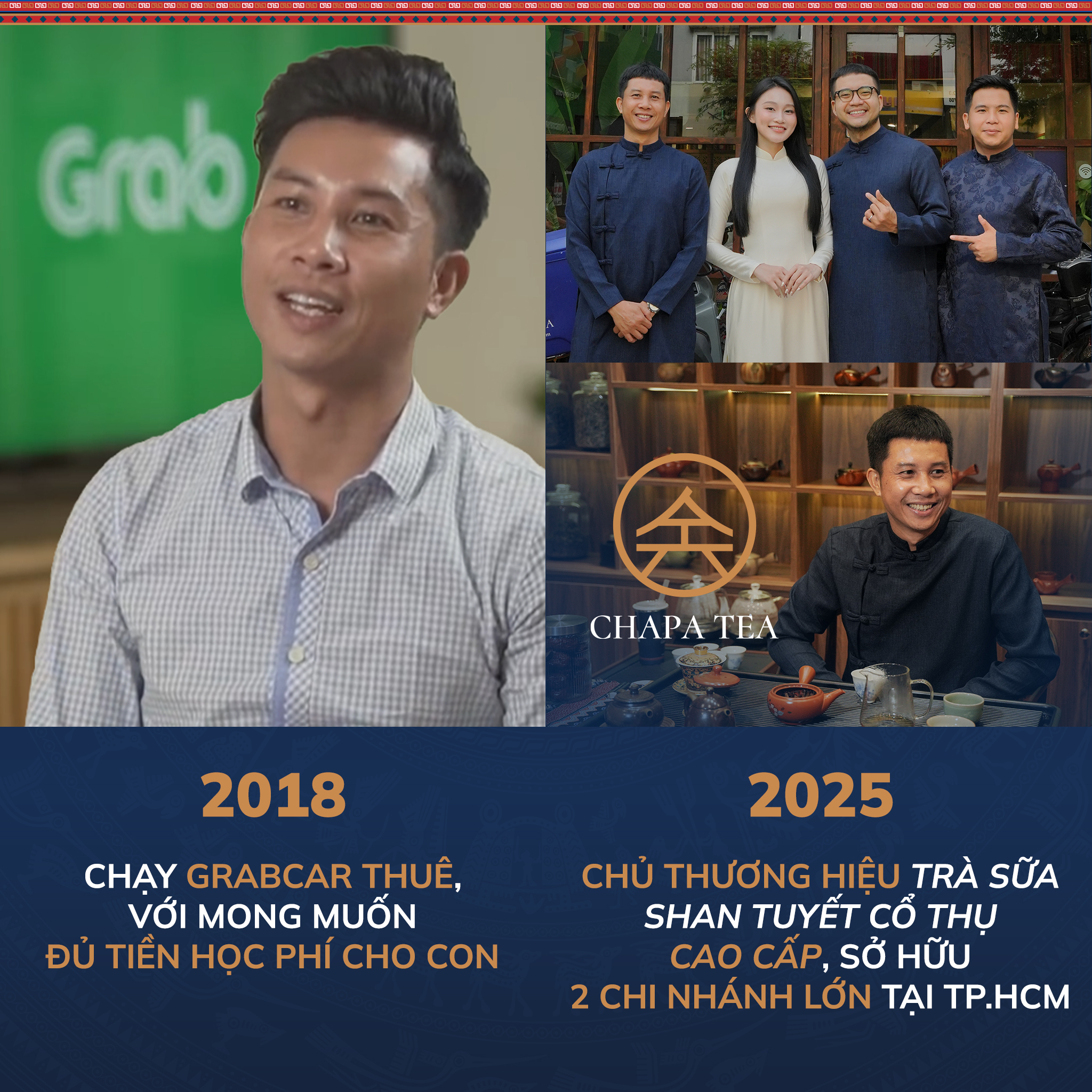 Để rồi sau nhiều năm bền bỉ, đến năm 2025, anh Lê Văn Tuấn đã trở thành Co- Founder CHAPA TEA — thương hiệu trà sữa cao cấp từ Shan Tuyết Cổ Thụ, với 2 chi nhánh tại TP.HCM.